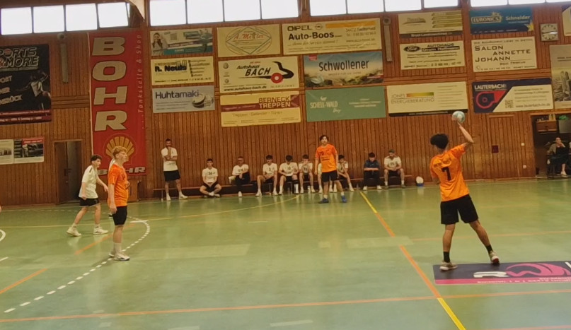 Am morgen ereilte das Trainerteam dann noch die Nachricht, dass Daniel Glebowitsch in seinem letzten B-Jugendspiel ebenfalls ausfallen würde. Kurzum es fehlte eine komplette Sieben und so stand kein einziger Auswechselspieler zur Verfügung und der Blick in die Halle verriet bereits beim Aufwärmen, dass die Gastgeber im Gegensatz dazu mit der sprichwörtlichen "Vollen Kapelle" antreten konnten.